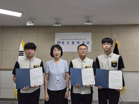 대구 청구중학교는 19일 현금이 든 귀중품을 주인에게 돌려준 재학생들에게 선행 학생 표창을 수여했다고 밝혔다. 청구중 3학년 정세명, 염도현, 최석현 학생은 지난 6일 대구 동구에 위치한 한 아파트 인근에서 ...