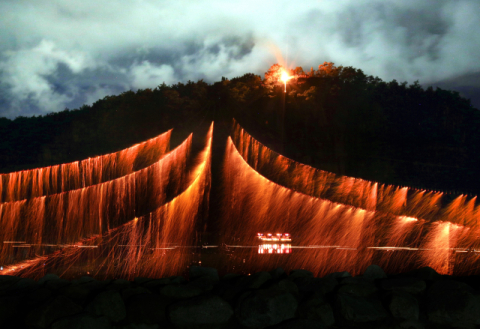 "낙화야~!" 어두운 밤 하회마을 만송정 앞 부용대 절벽위에서 솔갑단 불덩어리가 떨어진다. 절벽과 만송정을 연결하는 새끼줄에 매달린 낙화봉이 폭죽처럼 불꽃들을 밤하늘에 수놓는다. 하회마을을 휘돌아 흐르는...
