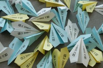 참가자 전원은 KTX 포항노선 개설 염원을 담은 희망종이비행기를 날렸다.