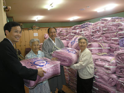 지산종합사회복지관과 원불교 대구교구는 2일 복지관에서 홀몸노인 1천 명에게 봄 이불을 한 채씩 전달하는 '은혜의 이불나눔' 행사를 가졌다.