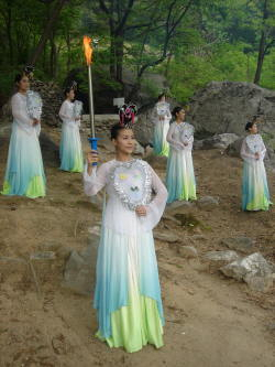 제45회 경북도민체육대회를 밝혀줄 성화가 6일 상주 만산동 천봉산 성황당에서 채화됐다. 이정백 상주시장과 김진욱 상주시의회 의장, 김동량 상주교육장이 참석해 도민체전의 안녕을 기원하는 고유제와 선녀무 등 의식행사를 가진 뒤 칠선녀에 의해 채화됐다.