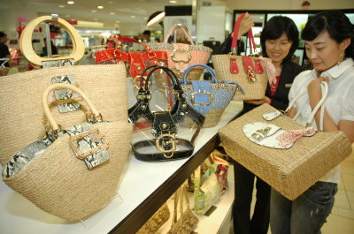예년보다 일찍 무더위가 시작된 때문인지 대구시내 백화점에는 올여름 유행할 '왕골 핸드백'과 '누드 비치백'이 일찌감치 등장했다. 판매가는 10만 원대부터. 사진은 대구백화점 잡화코너.
