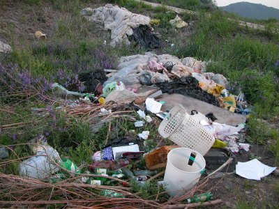 같은 날 7km쯤 하류인 안평리 안실마을 앞 쌍계천. 하천 풀 속 곳곳에 낚시꾼들이 버리고 간 소주병과 음료수병, 일회용 가스통이 널려 있었다. 불을 질러 태운 듯 새까맣게 탄 가스통도 많았다. 이 쓰레기들은 올 여름 장마가 시작되면 낙동강 하류로 떠내려갈 게 뻔한 일이다.