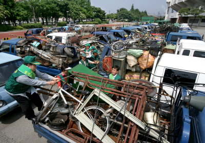 철강수요가 늘면서 고철값이 급등하자 포항시와 포항시 새마을회는 지난 5월부터 범시민 고철모으기 운동을 벌였다. 12일 오후 그동안 모은 고철을 모아 포항종합운동장앞에서 중간 평가대회를 가졌다. 포항시는 앞으로 경북도민 전체가 참여하는 고철모으기 운동을 대대적으로 전개키로 했다.