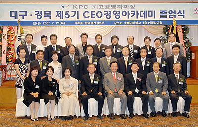 한국생산성본부 대구·경북지부는 12일 오후 6시 대구 인터불고호텔에서 'KPC CEO 경영아카데미 5기 수료식'을 가졌다.