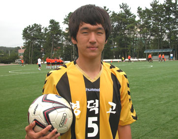 청소년 국가대표 선수로 지난 9일 선발된 영덕고 3년 신진범(19) 선수. 신 선수는 오는 25일부터 다음달 5일까지 중국 웨이팡시에서 열리는 2007년 국제 청소년 축구선수권대회에 태극마크를 달고 처녀 출전한다. 키 181cm, 몸무게 73kg의 당당한 체격에다 수비수이면서도 100m를 12초대에 주파하는 신 선수는 밀착 마크와 킥 능력이 뛰어나다는 평을 받고 있다.