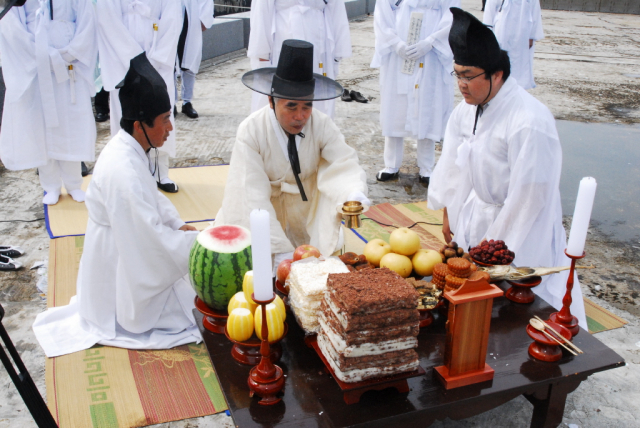 독도지킴이 안용복 장군을 기리는 진혼제가 7일 울릉군 지역혁신협의회, 안용복기념사업회, 안용복연구소, 대구한의대, 독도경비대 관계자 등 50여 명이 참석한 가운데 독도에서 열렸다.