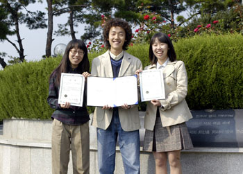 대구가톨릭대 컴퓨터교육과 3년 김준해(24)·추연주(21. 여)·조은영(20. 여) 씨 등 3명이 최근 이화여대에서 한국생산성본부 창립 50주년 기념으로 열린 '제1회 i-TOP 경진대회' 대학부에서 최고 점수를 받아 단체 대상(산업자원부장관상)을 수상했다.
