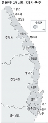 경상북도와 강원도, 울산광역시 등 3개 시·도 15개 시·군·구가 포함된 동해안권 개발 계획이 수립된다.