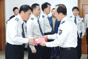 중앙지구대 안준석, 곽용식 경사는 특수절도 범인을 CCTV 확인 및 끈질긴 탐문수사로 범인을 검거한 유공자로 서장 표창을 받았다. 김국희 서장은 "범죄는 예방이 최우선이나 이미 발생한 사건은 반드시 범인을 검거한다는 생각을 가지고 치밀하고 근성 있는 자세로 검거에 최선을 다한 직원들에게 감사하다"며 "앞으로 더욱 더 열심히 일해 시민들이 안심하게 생업에 종사할 수 있도록 온 힘을 쏟으라"고 당부했다.