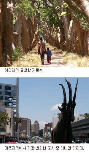 10월 말, 고산도시 하라레에는 선선한 바람이 불었다. 마치 지금 우리의 봄날씨처럼 햇살은 따뜻하고 부드러웠다. 도심의 가로수는 자카란다 나무이다. 그 즈음 자카란다는 붉은 꽃망울을 활짝 피우며 단풍처럼 거리를 물들이고 있었다. 나는 매일 자카란다 꽃잎이 뒤덮인 붉은 가로수길을 걸어 극장에 갔다. 점점 영화를 보는 것보다 영화를 보러 가는 산책길이 더 좋아졌다. 하라레 극장 가는 길은 마치 우리 동네 슈퍼 가는 길처럼 익숙하고 편안해졌다.