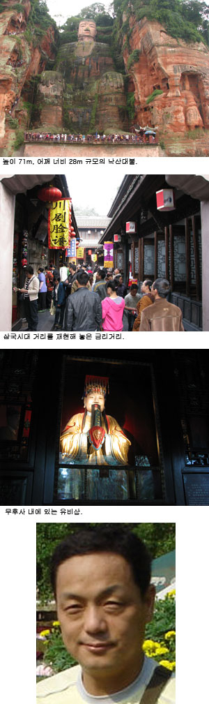 성도 시내에 무후사라는 삼국시대의 촉한을 세운 유비의 무덤과 사당이 있다. 물론 형제의 연을 맺어 그를 도운 장비와 관우, 그리고 천하의 재사 제갈공명의 영정들도 함께 모셔져 있는데 사람들은 유비보다는 제갈공명을 더 기억하여 제갈의 사후 시호인 무후를 모신 사당이라고 '무후사'로 부르고 있었다. 서로 크기가 다른 사당 안에 모셔진 촉한의 영웅 50구의 공봉을 뒤로하고 돌아가면 조그만 뒤뜰이 나오는데 여기는 돌로 유비, 관우, 장비의 모습을 만들어 놓았다. 이곳은 도원결의를 했던 장소로, 돌에 새긴 결의 등이 인상적이었다.