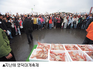 제13회 영덕대게축제가 12일부터 14일까지 3일 동안 영덕 삼사해상공원 및 강구항, 축산면 경정2리 등에서 성대하게 열린다. '놀러와요 대게 고향! 함께해요 즐거운 축제!'란 슬로건 아래 열리는 이번 축제는 12일 오전 11시 축산면 경정2리 대게원조마을 대게원조비에서 기원제를 시작으로 막이 오른다.