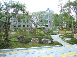 다양한 테마정원도 눈길을 끈다. 단지 입구에 있는 '기암원'은 수목과 기암절석이 어우러진 정원으로 다양한 모양과 색상의 풀과 꽃들이 산책에 재미를 준다. 단지 중심에는 시원한 물소리를 들을 수 있는 '소리정원'이 있다. 또 '마로니에 거리'는 칠엽수 나무 그늘이 만들어내는 이국적인 풍광을 연출하며, 은행나무를 활용한 소규모 휴게공간인 '추억담정원'은 신천 도로를 마주보고 조성돼 있어 지나가는 사람들의 눈길을 사로잡을 만하다. 놀이터를 따라 조성된 '은가람 정원'은 실개천의 맑음과 아이들이 즐겁게 뛰어 노는 모습을 함께 볼 수 있는 가족 공간이다. '벚꽃이 내리는 길'과 '초록향내 나는 길'은 봄의 낭만을 느낄 수 있는 자연과의 친화적인 공간이다.