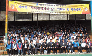 대한주택관리사협회 대구시회(회장 신은호)는 제21회 주택관리사의 날을 맞아 27일 대구 동구 봉무공원에서 회원 300여 명이 참석한 가운데 체육대회를 갖고 봉무공원 내 단산지수변공원 일대 환경보호 캠페인을 펼쳤다.