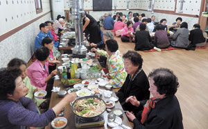포항 장성동 천북암소숯불촌(대표 이규근)은 11, 12일 양일 간 관내 경로당 어르신 100여 명을 초대해 점심을 대접했다.