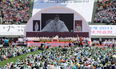 천주교 대구대교구 설정 100주년을 축하하고 지난 100년 동안의 은혜를 감사하는 100주년 기념 감사미사가 15일 대구시민운동장에서 성대하게 열렸다.