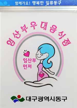 대구 동구는 임산부가 저렴하고 적정한 영양을 공급하는 식사를 할 수 있도록 '임산부 우대음식점'을 지정하여 운영한다.