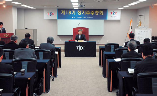 TBC 대구방송은 14일 대구 수성구 두산동 사옥에서 정기주주총회를 개최하여 임기가 만료된 김정길, 김향자 이사를 각각 임기 3년의 사외이사 및 기타비상무이사로 재선임하였다.