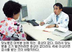 당뇨병은 이유 없이 피곤하고 소변량이 증가하며, 갈증이 계속되거나 별다른 이유 없이 체중이 감소하면 의심해볼 수 있다. 하지만 대부분은 증상 없이 우연히 시행한 혈액 검사를 통해 확인된다. 당뇨병을 조기 발견하려면 증상이 없어도 45세 이상이면 검사를 받고, 정상이라고 판명돼도 3년마다 정기 검사를 받는 것이 좋다.