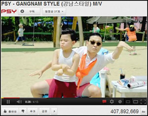 싸이 강남스타일 뮤직비디오가 4억뷰를 돌파해 화제다.