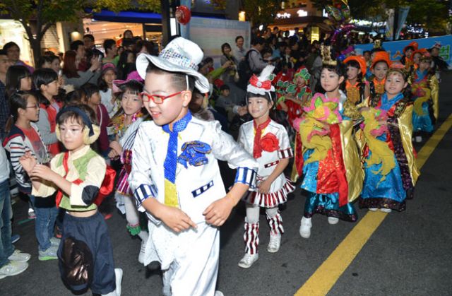 13일 '컬러풀 시민 퍼레이드'에서 어린이들이 이색 복장을 하고 거리 행진을 하자 많은 관심이 쏠렸다.