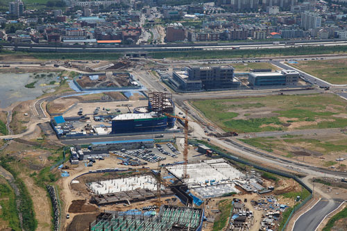 첨복단지 핵심지구에는 건축 공사가 한창이다. 커뮤니케이션센터와 뒤편으로 4개의 정부 기관들은 철골이 상당 부분 올라가 얼추 외형을 드러내고 있다. 철골 위로 크레인들이 쉴 새 없이 움직이고 여기저기 공사 굉음이 분출하고 있다. 공사 관계자들은 4월쯤이면 철골들이 완성돼 정부기관들의 위용을 드러낼 것으로 예상했다.