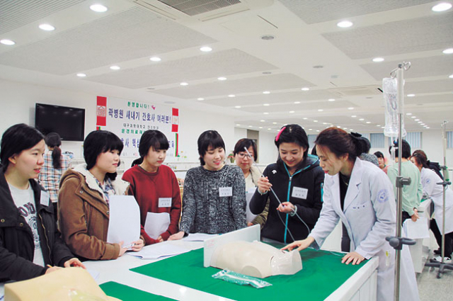 곽병원 강영주 간호부장은 "대구과학대 간호학과는 최첨단 시뮬레이션 마네킹을 비롯한 최신의 기자재를 갖추고 있어 일선 병원 환경에 전혀 뒤지지 않는다"며 "그런 시설과 프로그램을 우리 병원의 신규 간호사를 교육 때 적용할 수 있으면 좋겠다는 의견이 있어 이번에 함께 교육을 진행하게 됐다"고 말했다.
