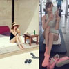 헬스장 사진 속 한지혜는 짧은 핫팬츠와 민소매 티셔츠를 입고 극세사 다리를 뽐냈다.