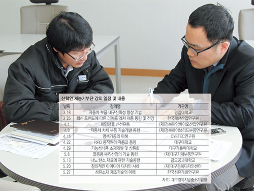 18일 오후 대구 달서구 대구경북지방중소기업청 산학협력관. 기업 실무자 30여 명이 경일대팀이 발표한 '자동차부품 내구 신뢰성 향상 기법' 강의에 집중하고 있었다.