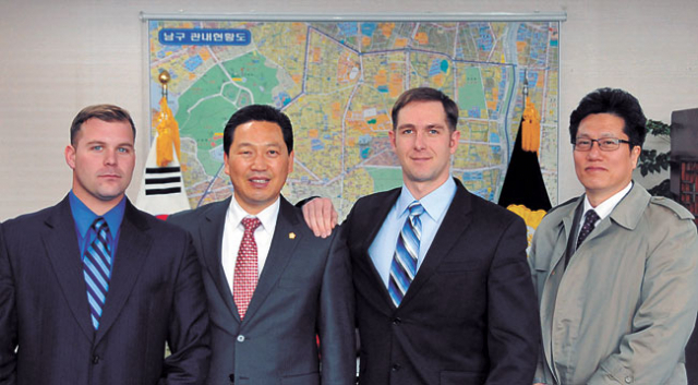 주한 미군부대 정보부(MI) 책임자 마니클 파올루치와 조셉 해스킨스 일행이 21일 대구 남구의회를 방문해 조재구 의장과 환담을 갖고 캠프워커 H-805헬기장 및 동쪽활주로 반환관련 사항 등을 논의했다.