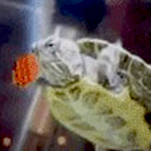 해당 동영상 속에는 어항 속 거북이가 유리 벽면에 붙여진 물고기 스티커를 진짜 먹이로 착각해 먹이를 먹기 위해 포기하지 않고 돌격하는 모습을 보였다.