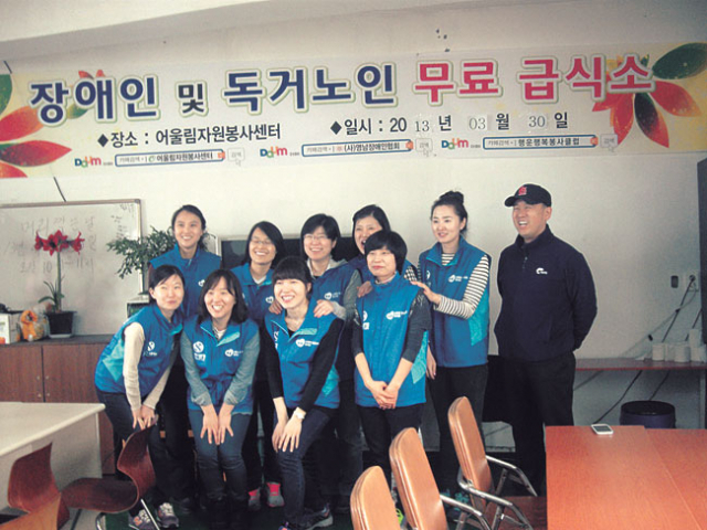 신한생명 업무팀은 최근 어울림자원봉사센터에서 홀몸노인 및 장애인 200여 명에게 무료급식 봉사활동을 하고 쌀 7포대(10㎏)와 박하사탕 200봉지를 후원했다.