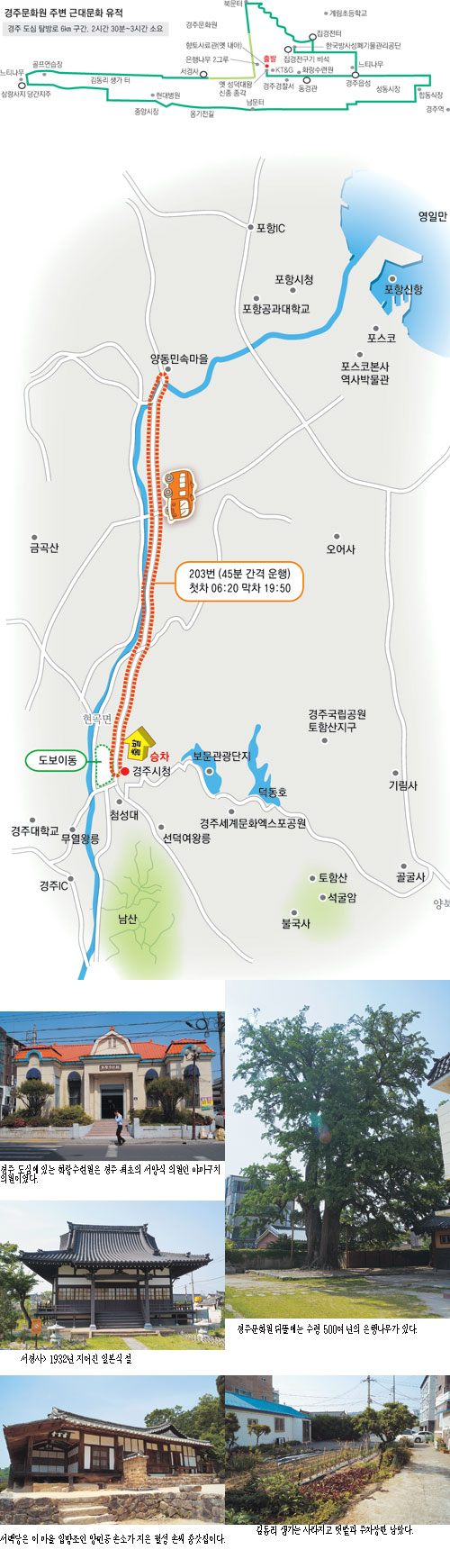 경주에 신라만 있는 것이 아니다. 옛 도심에는 조용히 묻혀 있는 근대문화재가 산재해 있고, 양동마을은 더 말할 나위 없는 대표적인 유교 문화다. 하지만 경주 도심의 근대문화재들은 변변한 안내판도 없을 정도로 외면받는다. 경주시는 대구 중구의 근대골목투어가 옛 골목에 어떻게 스토리텔링을 접목시켜 성공했는지를 살펴볼 필요가 있다. 때 이른 더위에 도심 거리도, 양동마을도 한껏 달아올랐다.