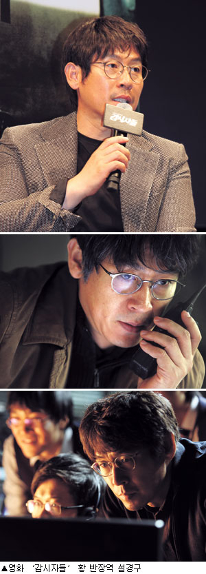 '감시자들'은 정체를 감춘 채 흔적조차 없는 범죄 조직을 쫓는 경찰 내 감시 전문가들의 추적을 그린다. 설경구는 감시반의 현장 반장 역할이다. 쉽게 말해 범죄 용의자를 추적하기 위해 판을 짜는 역할이다. 영화의 만듦새도 괜찮고, 영화를 향한 설경구의 애착도 강해 보인다.