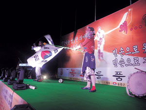 품바 명인 이계준 씨의 '독도를 품자' 공연이 지역 곳곳에서 펼쳐졌다. 지난달 11일 대구 수성구 방공포병학교, 제5군수 지원사령부 등 군부대 위문공연을 시작으로 22, 23일 포항 영일대 해수욕장 공연에 이어 25~27일 울릉도 도동항 해변공원에서 왕초품바 공연이 열렸다.