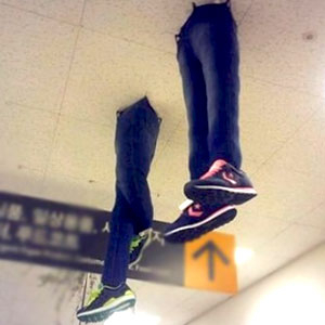 공개된 흔한 신발 판매 광고에서는 청바지에 운동화를 신은 마네킹이 천장에 부착되어 있는 모습이 담겨있다. 특히 천장을 뚫고 나온듯한 두 개의 마네킹은 보는 이들로 하여금 깜짝 놀라게 만들었다.