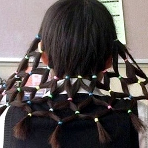 사진은 한 여학생의 뒷 모습을 담은 것으로, 색색의 머리끈을 이용해 머리카락을 그물처럼 촘촘하게 묶은 모습이 눈길을 끈다.