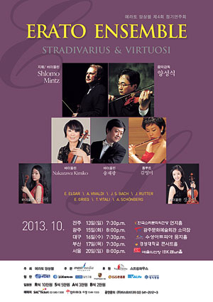 에라토 앙상블은 대구가톨릭대 교수로 재직 중인 바이올리니스트 양성식이 음악감독을 맡아 지난 2011년 창단한 실내악 연주단체. 이번 공연에는 세계적인 바이올리니스트이자 지휘자인 '슐로모 민츠'를 비롯해 바이올리니스트 양성식, 나카자와 기미코, 김다미, 장유진 등 솔로이스트로 최고 연주기량을 선보이는 음악가들이 대거 출연한다.