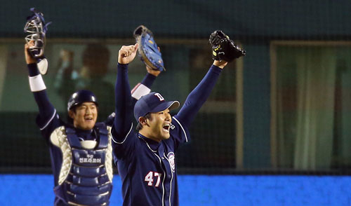 또 준플레이오프에서 불안한 모습을 노출했던 홍상삼은 3이닝 동안 볼넷 1개만 허용하고 무안타 무실점으로 깔끔하게 경기를 마무리해 포스트시즌 14경기 만에 첫 세이브를 올렸다.