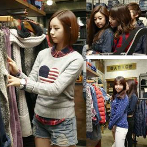 SK네트웍스에서 전개하는 타미 힐피거 데님 매장에서 인기 걸그룹 걸스데이 멤버 소진, 민아, 유라, 혜리가 쇼핑하는 모습이 포착되었다.