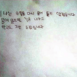 한 어린이가 쓴 것으로 보이는 '손톱 물어뜯는 버릇' 각서에 따르면 "나는 손톱을 다시 물어뜯지 않겠습니다. 물어뜯으면 집을 나가고 학교도 그만 두겠습니다"라는 문장이 적혀있다.