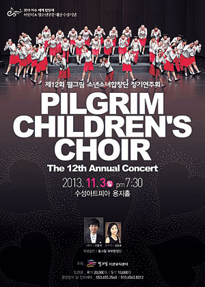 필그림소년소녀합창단의 제12회 정기연주회가 내달 3일 오후 7시 30분 수성아트피아 용지홀에서 열린다. 이번 정기연주회는 '2013 여수 세계합창제' 어린이&청소년 부문 대상 수상을 기념해 열린다.