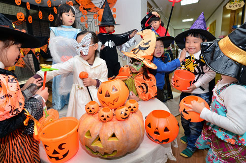 10월의 마지막 날인 31일은 '핼러윈 데이'로 이색적인 서양축제의 날이다. 30일 오후 대구 성서어린이집에서 귀신 또는 유령복장을 한 아이들이 "맛있는 것을 주지 않으면 장난칠 거야!"라는 말을 하며 파티를 즐기고 있다.