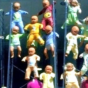 공개된 '무서운 아기 마네킹' 사진에는 수많은 아기 마네킹들이 옷 매장 쇼윈도에 매달려 있다. 특히 허공에 매달린 엄청난 양의 '무서운 아기 마네킹'들은 섬뜩함을 자아냈다.