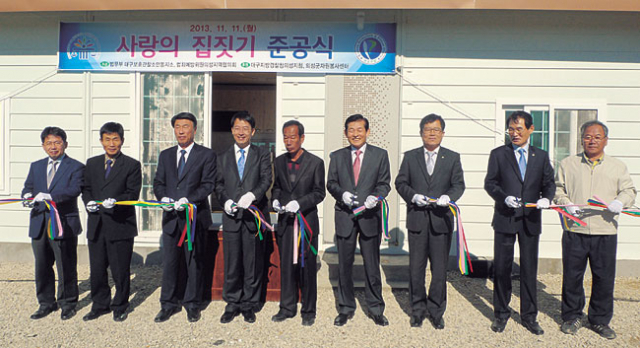 대구지방검찰청 의성지청(지청장 김후균)과 법무부 범죄예방위원 의성지역협의회(회장 이상문), 안동보호관찰소(소장 조종기), 의성군 자원봉사센터 집수리 전문 봉사대는 11일 의성군 안계면 용기리에서 '사랑의 집짓기' 준공식을 갖고, 집주인 양성수(56) 씨 가족들에게 따뜻한 새 보금자리를 선물했다. 이전 양 씨의 집은 수십 년 전 흙담으로 지은 집이라 곳곳에서 비가 새고 무너지기 일보 직전의 열악한 환경이었고, 노모와 헤어져 생활하는 등 고충이 이만저만이 아니었다.