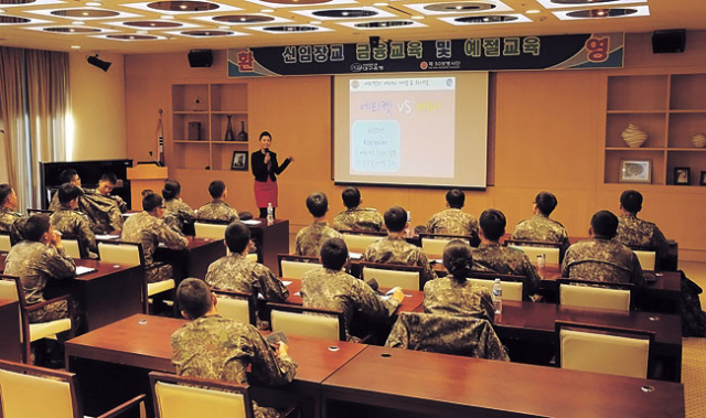 대구은행(은행장 하춘수)은 12일 본점 비즈니스룸에서 제50 보병사단(사단장 김해석) 신임 장교 20여 명을 대상으로 금융교육과 생활예절교육을 했다.
