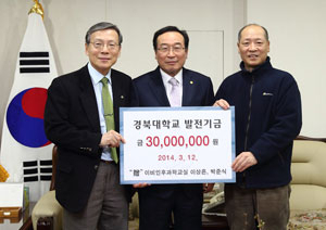 이상흔'박준식 경북대 명예교수는 12일 함인석 경북대 총장을 방문해 제자들을 위해 써달라며 발전기금 3천만원을 전달했다.