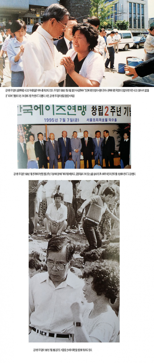 이때가 1995년이다. 에이즈에 대한 사회적 시선이 따가운 때였고, 지금과 같은 사회적 보호장치나 치료약도 거의 없던 시절이었다. 그야말로 김 추기경을 찾아왔던 사람은 '절망의 끝'에 선 사람이었던 것이다. 이 일화를 소개하면서 김수환 추기경은 이렇게 덧붙였다.