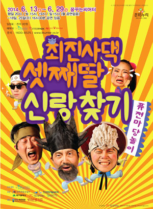 문화예술 사회적기업 꿈꾸는씨어터는 6월 13일부터 29일까지 대명동 꿈꾸는씨어터에서 '퓨전마당놀이 최진사댁 셋째딸 신랑찾기'를 공연한다. 화'목'금요일은 오후 8시, 수요일은 오후 4시 30분과 8시, 토요일은 오후 3시와 7시, 일요일은 오후 3시 공연이 있다.